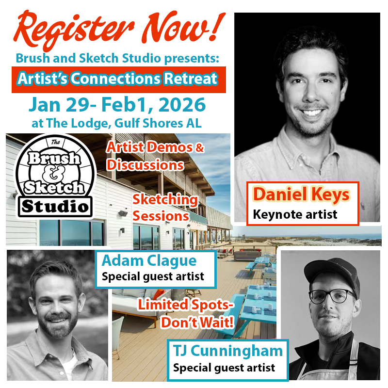 An exclusive retreat for a limited number of artists.Step away from the everyday and immerse yourself in creativity, connection, and inspiration. At this one-of-a-kind retreat, you’ll meet and learn from world-class artists—including keynote speaker Daniel Keys and special guest artists TJ Cunningham and Adam Clague—while surrounded by the breathtaking natural beauty of the gulf coast.